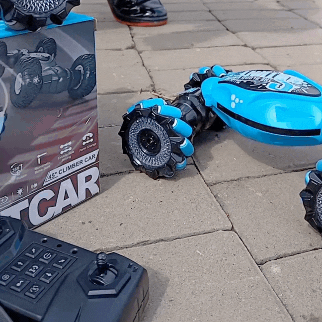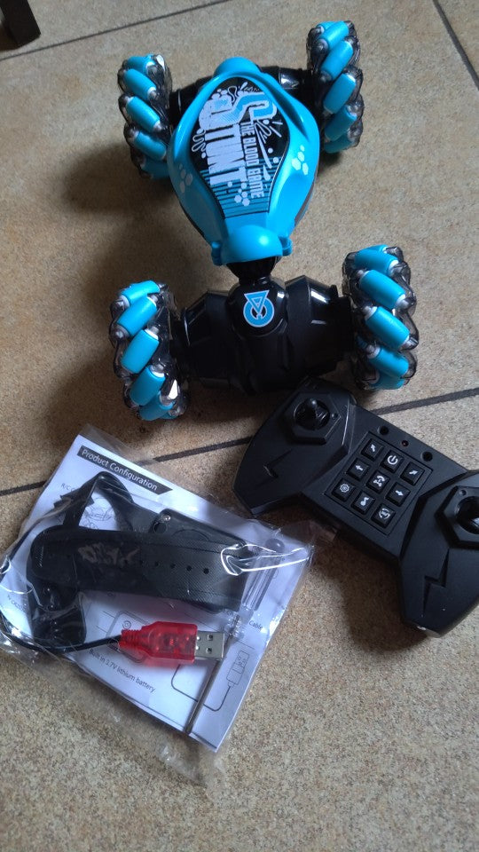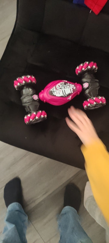 This car features 360° rotating capabilities, LED lights, and a spray stunt function. The gesture radio remote control adds an interactive element to the driving experience.